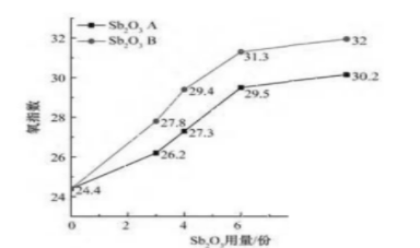 上面有二根線條,同樣是添加三氧化二銻,但是圖線的氧化指數(shù)卻不同,這是因為不同的廠家的三氧化二銻成分不同,因此造成的效果也不相同。