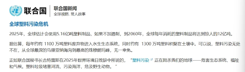 正如聯合國秘書長古特雷斯在致辭中警示:“塑料污染正在扼殺我們的地球”。