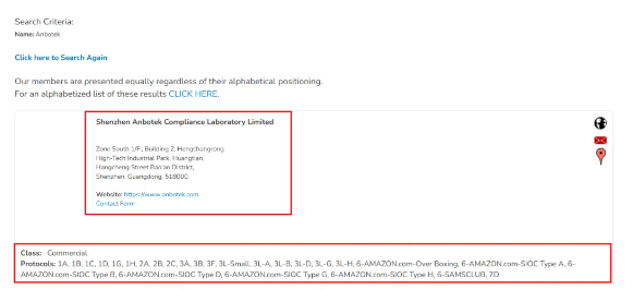 4. 根據名稱搜索 Anbotek 實驗室,將會顯示 Anbotek 實驗室的相關信息及相關授權標準。