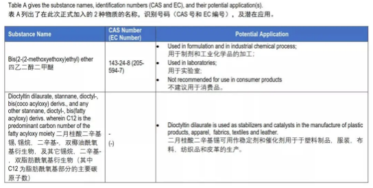 新增SVHC候選物質(zhì)見下表