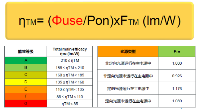 光源的能效等級(jí)和光源類型劃分FTM如下: